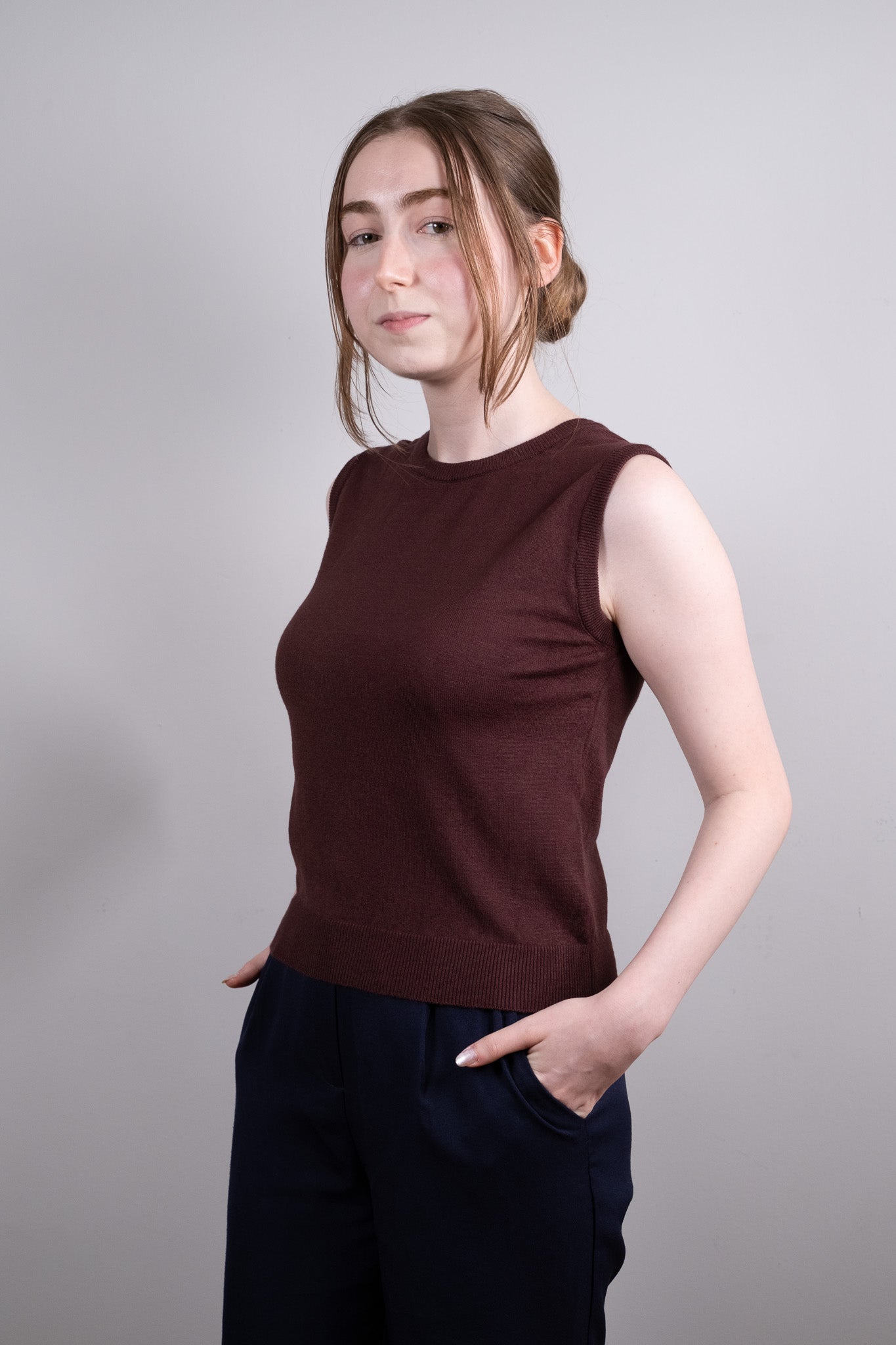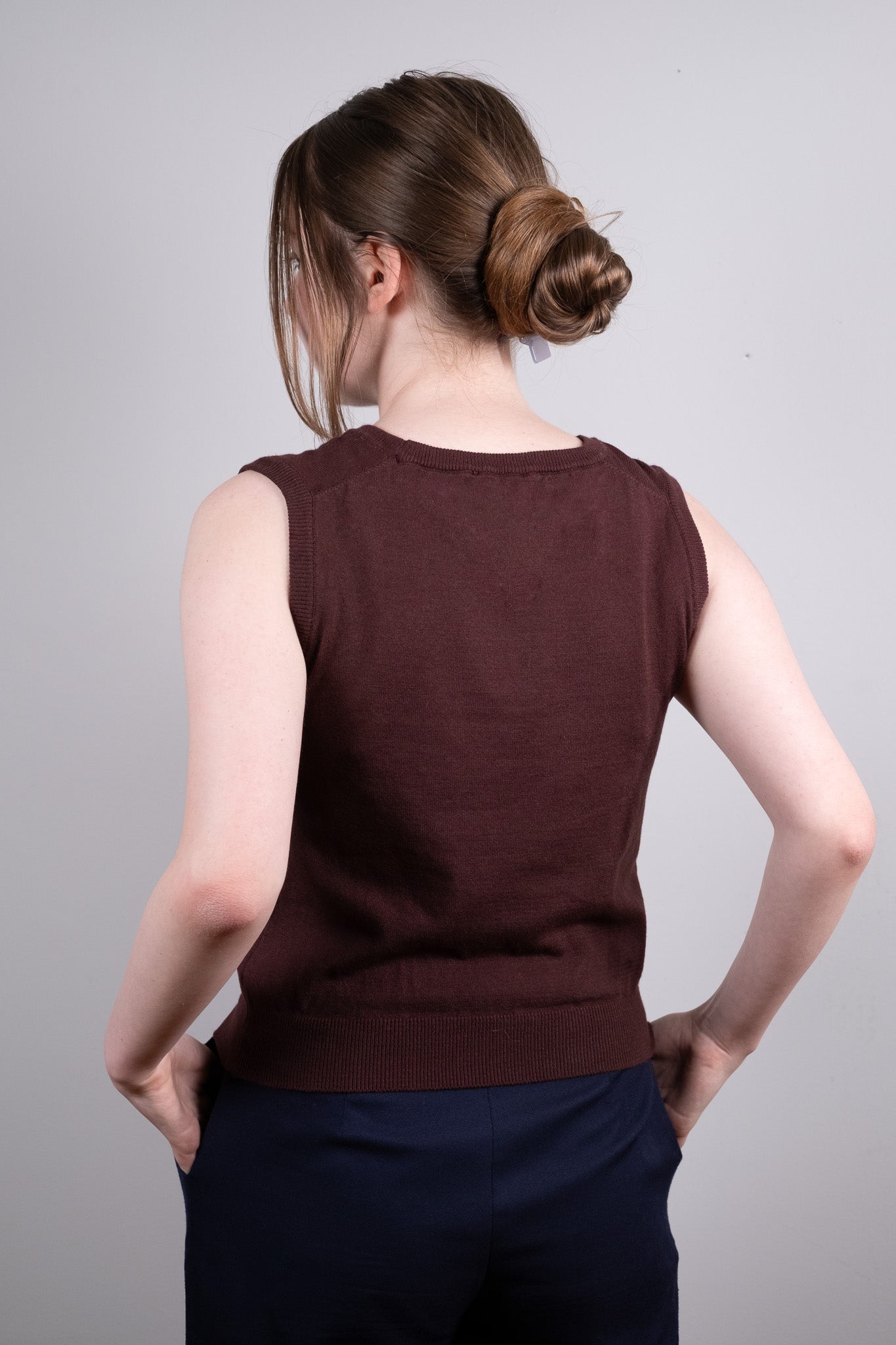 Sıcak kahverengi tonu ve yumuşak dokusuyla triko atlet, her mevsim kombinlerin kurtarıcı parçasıdır. Esnek yapısı sayesinde vücuda uyum sağlar, gün boyu rahatlık sunar. Minimal tasarımıyla ister tek başına, ister gömlek veya ceketlerle katmanlı şekilde kullanarak şık ve modern bir görünüm yakalayabilirsiniz. Pantolon, etek ve şortlarla kolayca kombinlenebilir.