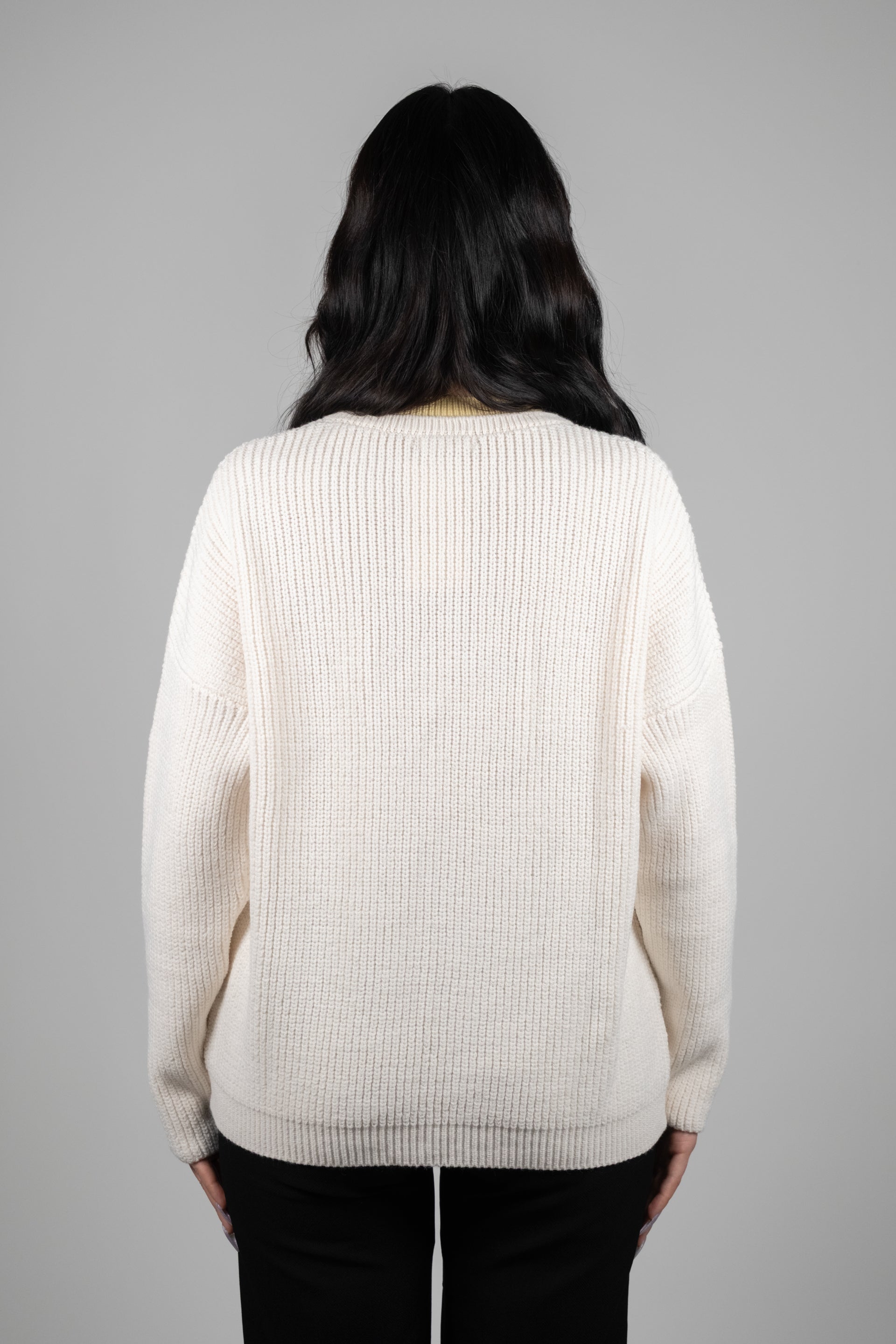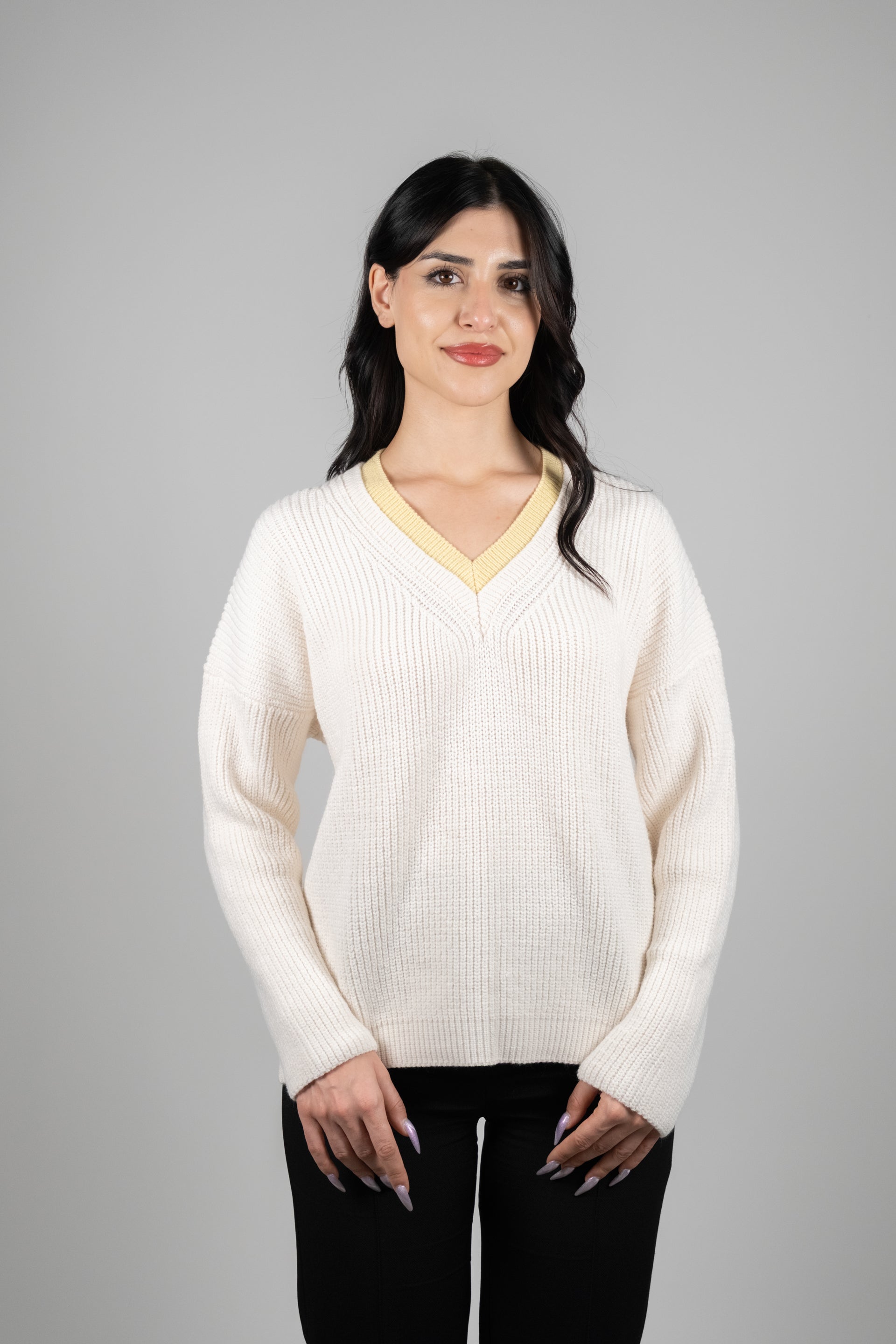 Sarı Yaka Detaylı Krem Kadın Triko Kazak